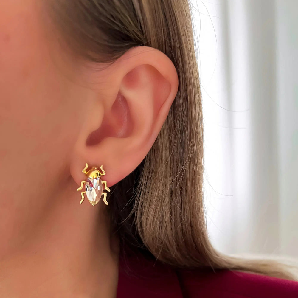 Örhängen med skalbaggar i kristall.